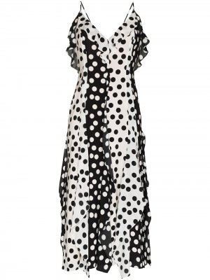 Принт в горох, вырез-петля халтер, ярусная юбка и длина по щиколотку.
