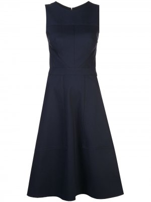 (Каролина Эррера). Круглый вырез, модель без рукавов, потайная застежка на молнии сзади, приталенный крой, А-образный силуэт и средней длины.