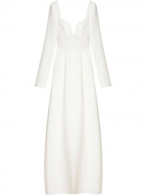Вырез в форме сердца, длинные рукава, разрез, длина макси и потайная застежка на молнии сзади. Цвет: белый.