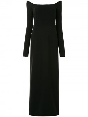 Открытые плечи, длинные рукава, приталенный силуэт и силуэт «карандаш». Цвет: черный.